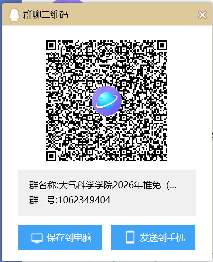大气科学学院2026年推免(直博)咨询QQ群:1062349404