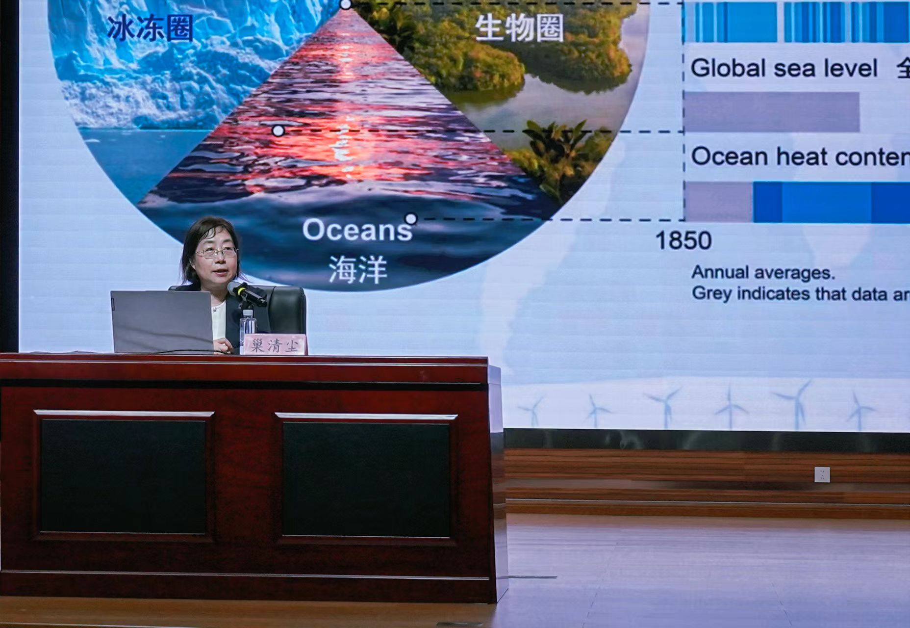 随后,巢清尘教授分享了自己在气候领域的研究与实践体会。她表示,气候领域国际合作涵盖科学、发展、安全等多方面,不同平台对专业知识要求不同。同时,中国在全球气候合作中积极参与,贡献诸多中国方案,发挥着引领作用,而科学话语权的提升与科技的有力支撑,为我国更好地参与气候合作奠定坚实基础。